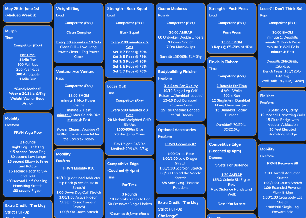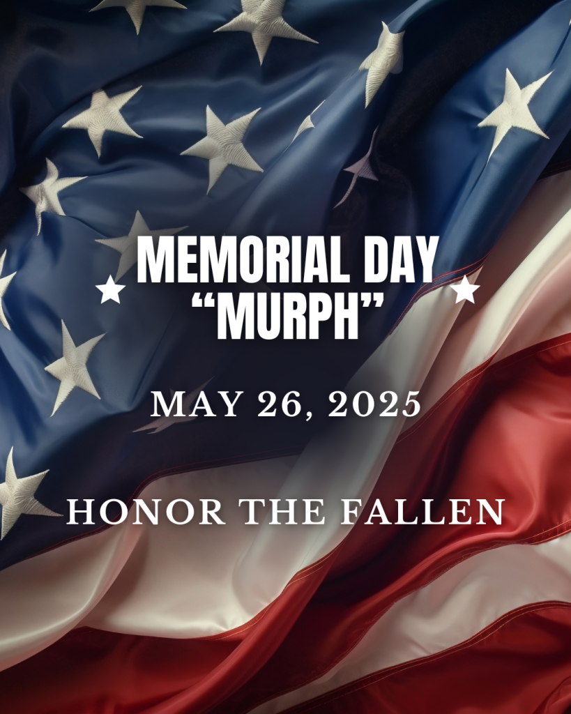 Welcome to Murph Week! On Monday, May 26, we’ll start heats of “Murph” at 0830 and run every 30 minutes until 1000. All other classes are canceled in observance of the holiday.