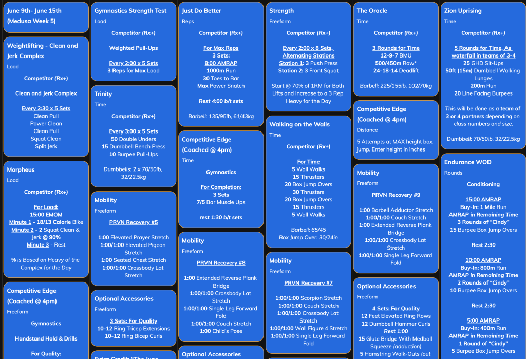 ● Friday: “The Oracle” – Benchmark-style couplet emphasizing pulling and hinging at intensity