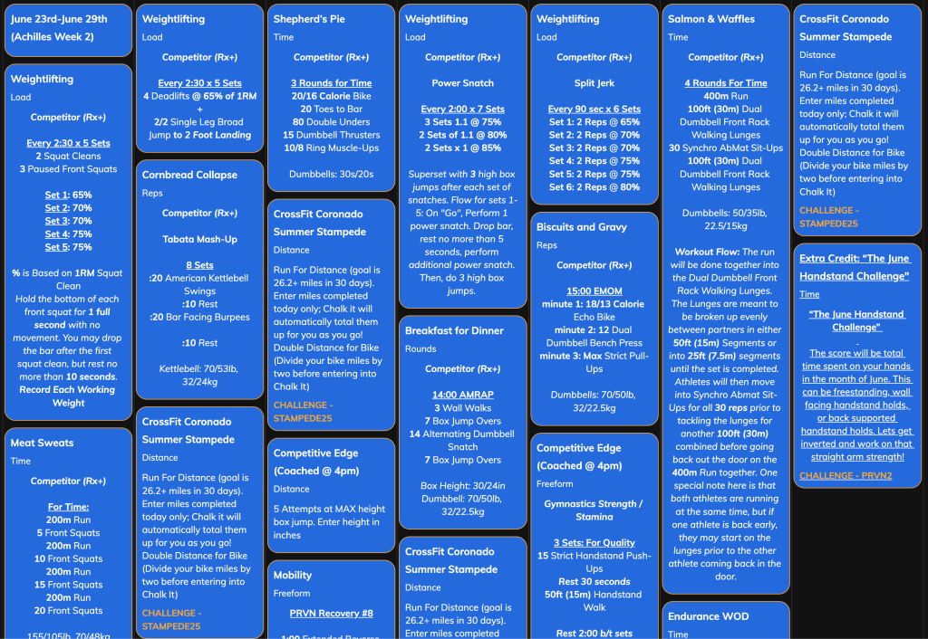 ● Wednesday: “Shepherd’s Pie” – Fatigued Gymnastics workout centered around Ring Muscle-Up volume