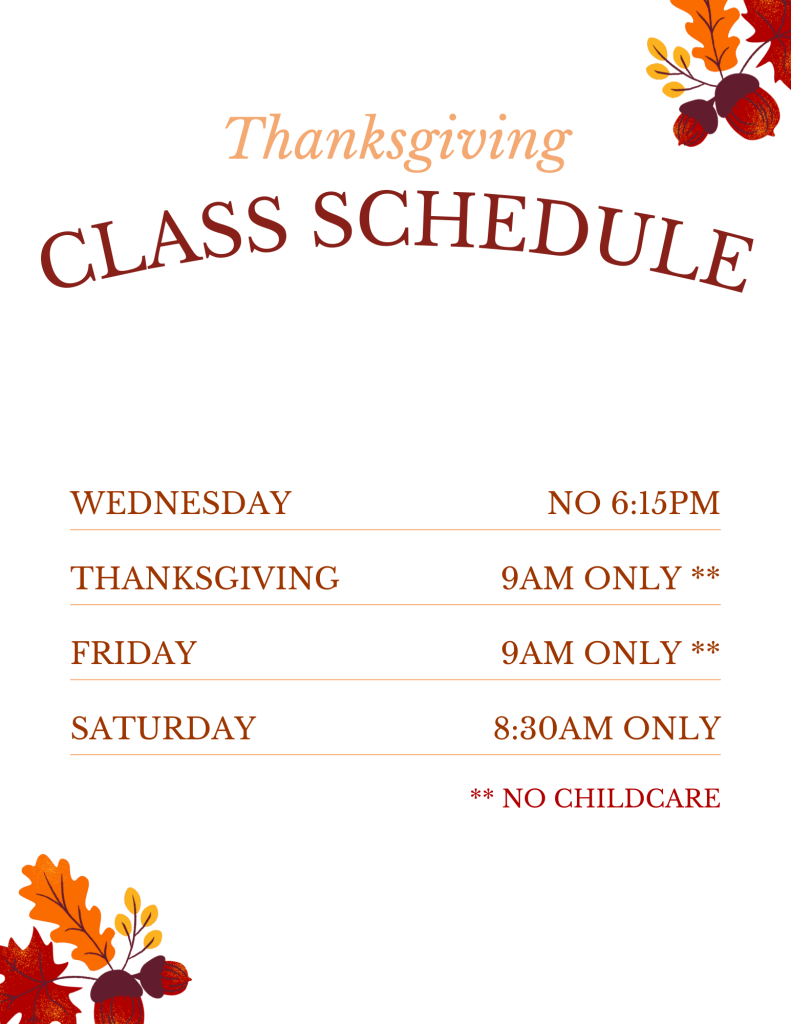 Happy Thanksgiving Week! Modified Schedule this week 🙂